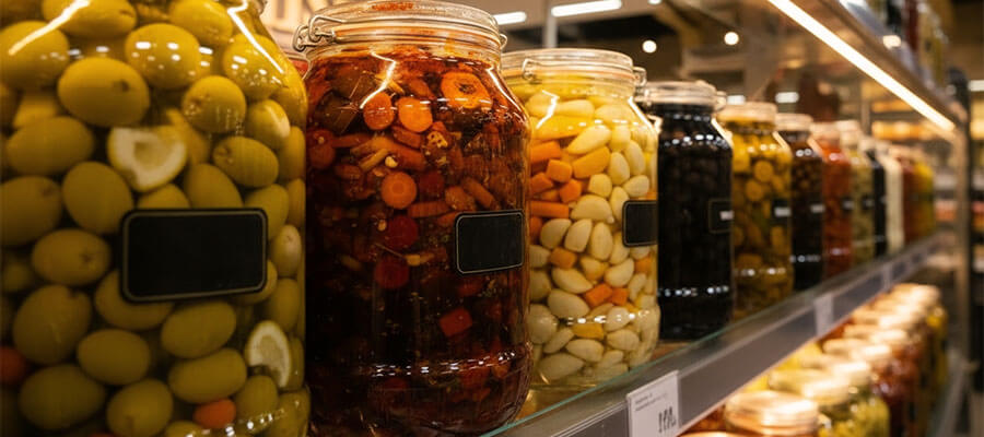 شامل مجموعهای از ترشیها، شورها، زیتون و مزههای اصیل ایرانی با طعمی خانگی و دلپذیر.